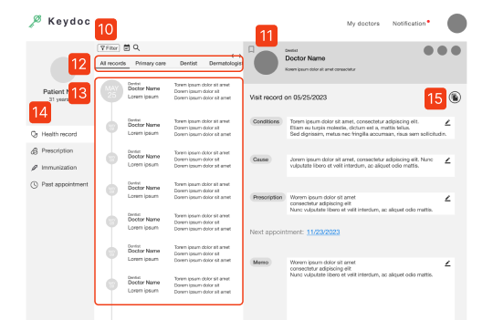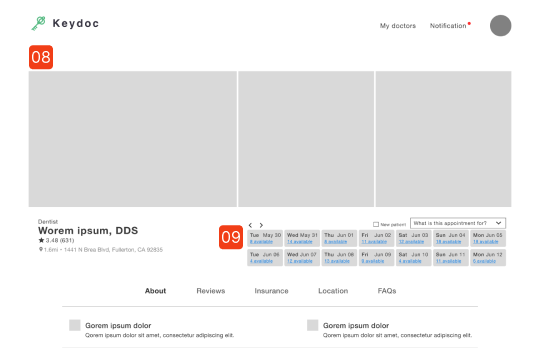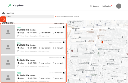 Saved doctor list; Horizontal display of information