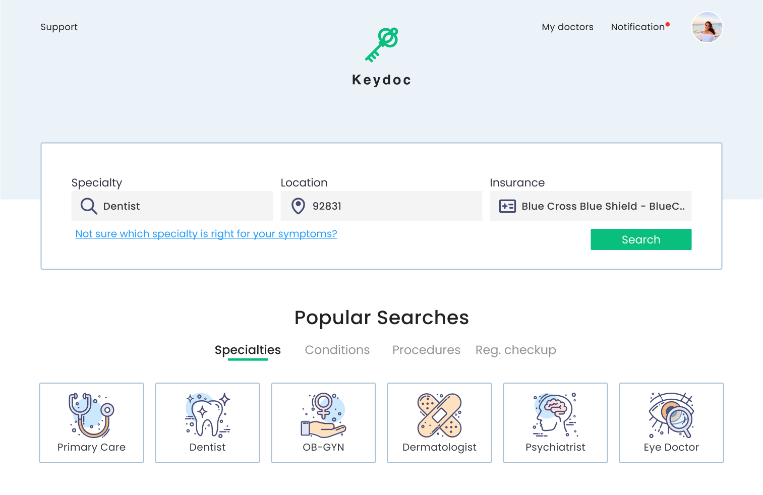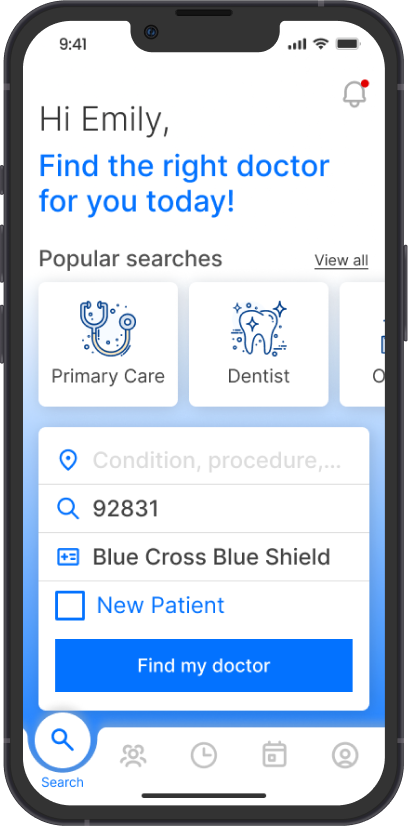 To see doctors based on your desired conditions, simply input the details with a few efforts. Entering your insurance and location once will auto-complete them for convenience.