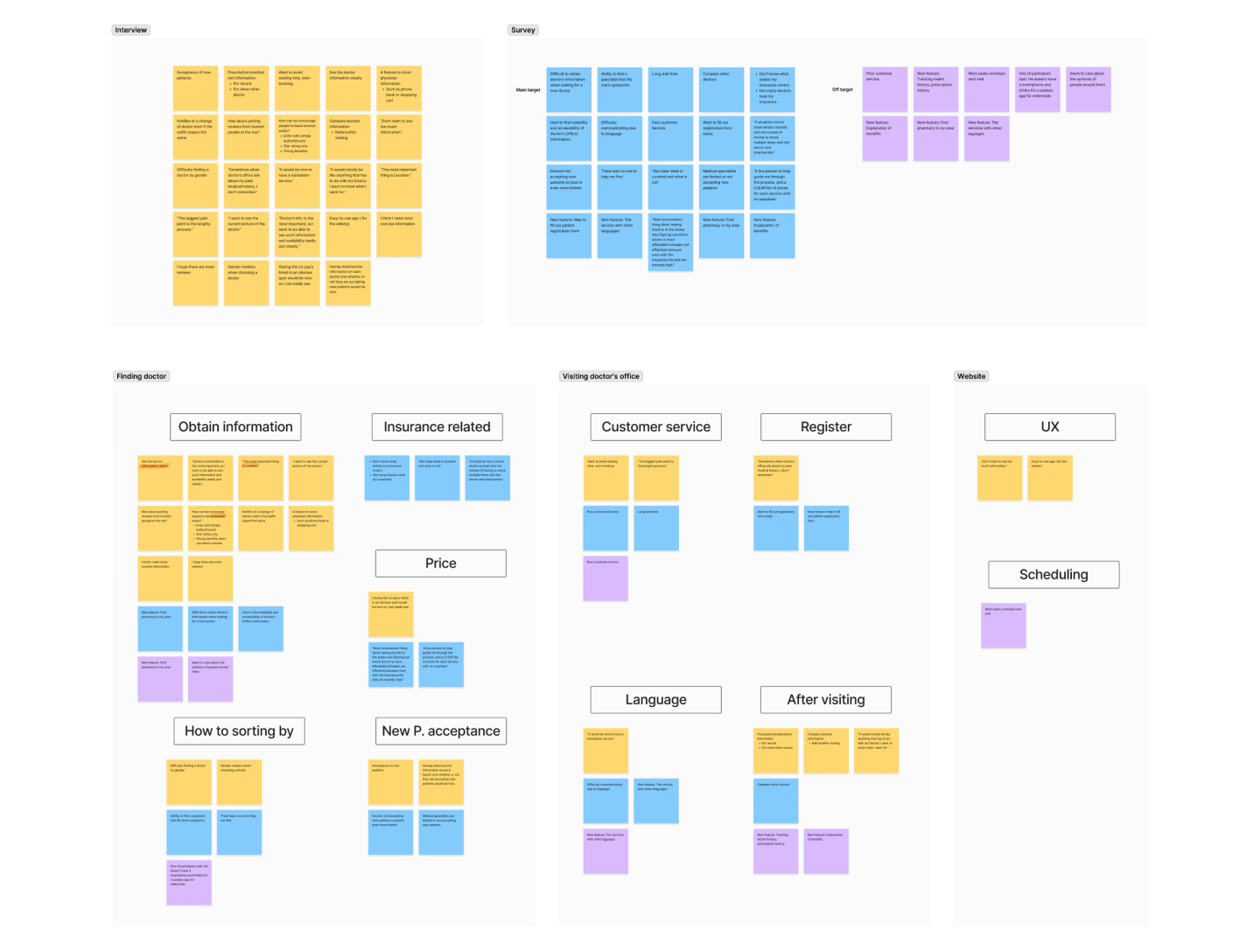 Affinity mapping was conducted using cards derived from extracting repeated and impactful opinions obtained through interviews and surveys.