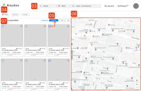 Utilize the ‘Compare’ button for swift side-by-side doctor assessments on one screen. In addition, save the doctors for effortless future reference.