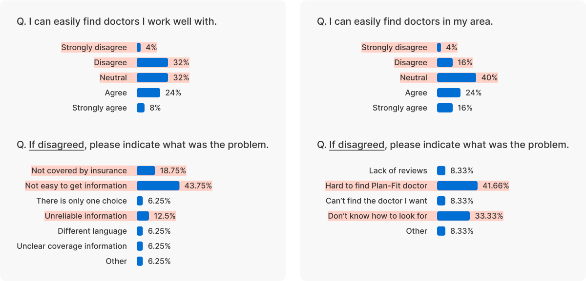 57% of respondents stated “It was difficult to find a doctor who was work well with”